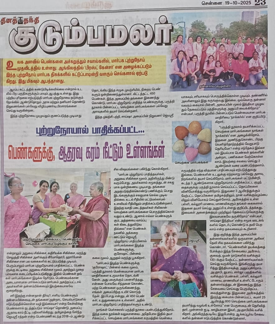 To support breast cancer survivors, Akhila Malayalee Mahila Association and Madras Kerala Samaj Women's Wing, in collaboration with Saaisha India Association, held an awareness programme on Sunday, 8 June 2025.
